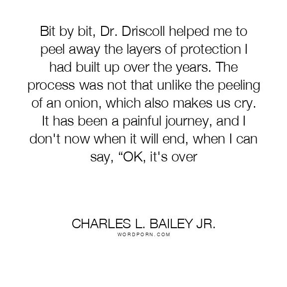 Bit by bit, Dr. Driscoll helped me to peel away the layers of protection I had built up over the years. The process was not that unlike the peeling of an onion, which also makes us cry. It has been a painful journey, and I don't now when it will end, when I can say, “OK, it's over