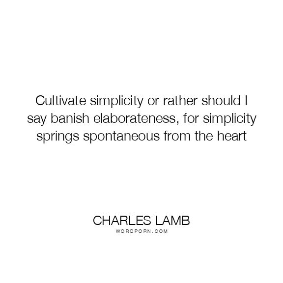 Cultivate simplicity or rather should I say banish elaborateness, for simplicity springs spontaneous from the heart