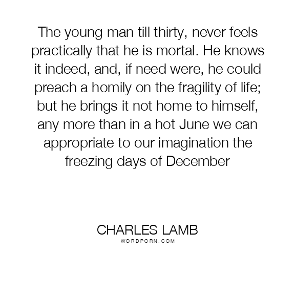 The young man till thirty, never feels practically that he is mortal. He knows it indeed, and, if need were, he could preach a homily on the fragility of life; but he brings it not home to himself, any more than in a hot June we can appropriate to our imagination the freezing days of December
