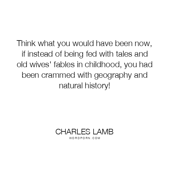 Think what you would have been now, if instead of being fed with tales and old wives' fables in childhood, you had been crammed with geography and natural history!