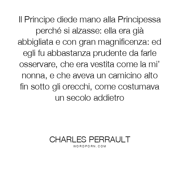 Il Principe diede mano alla Principessa perché si alzasse: ella era già abbigliata e con gran magnificenza: ed egli fu abbastanza prudente da farle osservare, che era vestita come la mi’ nonna, e che aveva un camicino alto fin sotto gli orecchi, come costumava un secolo addietro