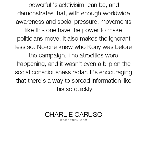 The Kony campaign us an example of how powerful 'slacktivisim' can be, and demonstrates that, with enough worldwide awareness and social pressure, movements like this one have the power to make politicians move. It also makes the ignorant less so. No-one knew who Kony was before the campaign. The atrocities were happening, and it wasn't even a blip on the social consciousness radar. It's encouraging that there's a way to spread information like this so quickly