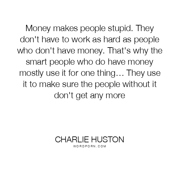 Money makes people stupid. They don't have to work as hard as people who don't have money. That's why the smart people who do have money mostly use it for one thing… They use it to make sure the people without it don't get any more