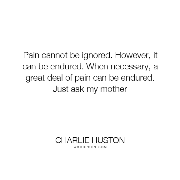Pain cannot be ignored. However, it can be endured. When necessary, a great deal of pain can be endured. Just ask my mother