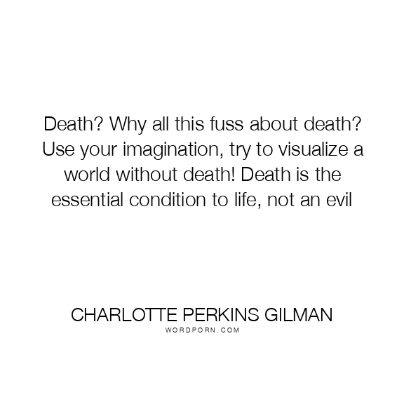 Death? Why all this fuss about death? Use your imagination, try to visualize a world without death! Death is the essential condition to life, not an evil