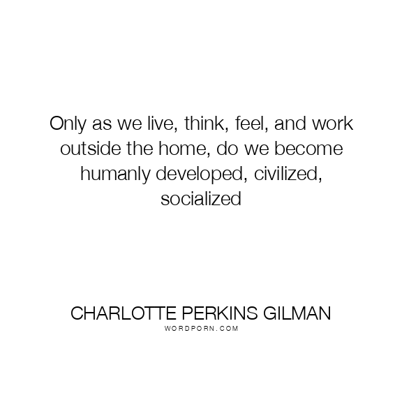 Only as we live, think, feel, and work outside the home, do we become humanly developed, civilized, socialized
