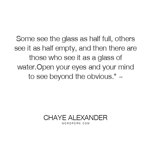 Some see the glass as half full, others see it as half empty, and then there are those who see it as a glass of water.Open your eyes and your mind to see beyond the obvious." ~