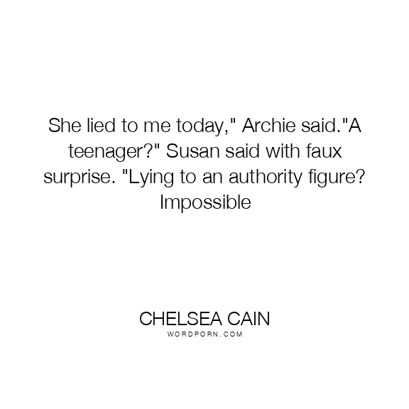 She lied to me today," Archie said."A teenager?" Susan said with faux surprise. "Lying to an authority figure? Impossible