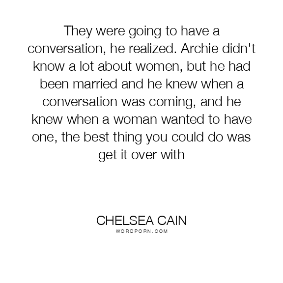 They were going to have a conversation, he realized. Archie didn't know a lot about women, but he had been married and he knew when a conversation was coming, and he knew when a woman wanted to have one, the best thing you could do was get it over with