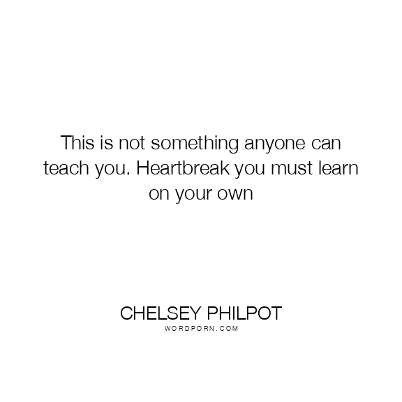 This is not something anyone can teach you. Heartbreak you must learn on your own