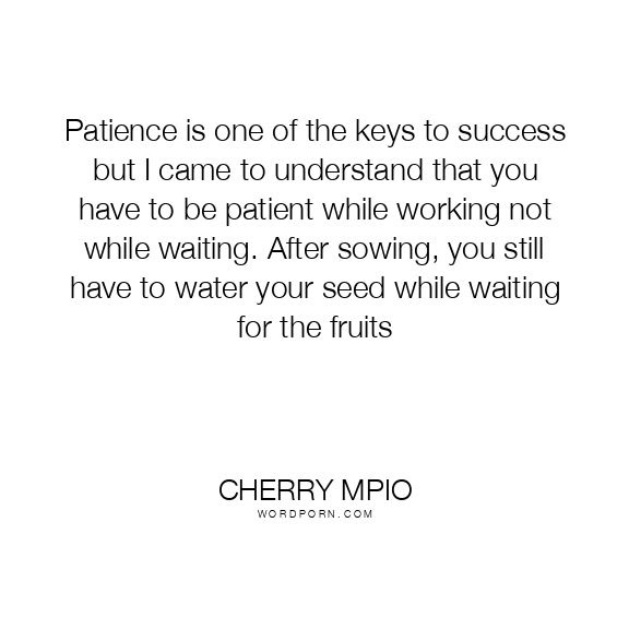 Patience is one of the keys to success but I came to understand that you have to be patient while working not while waiting. After sowing, you still have to water your seed while waiting for the fruits