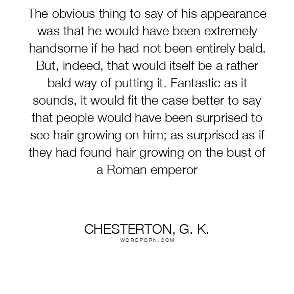 The obvious thing to say of his appearance was that he would have been extremely handsome if he had not been entirely bald. But, indeed, that would itself be a rather bald way of putting it. Fantastic as it sounds, it would fit the case better to say that people would have been surprised to see hair growing on him; as surprised as if they had found hair growing on the bust of a Roman emperor