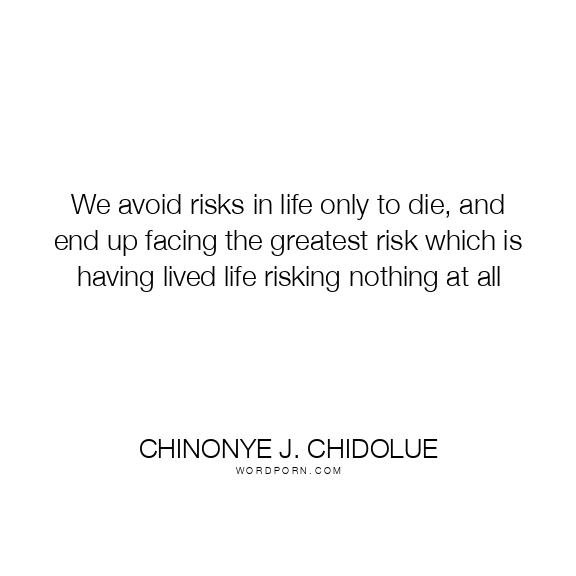 We avoid risks in life only to die, and end up facing the greatest risk which is having lived life risking nothing at all