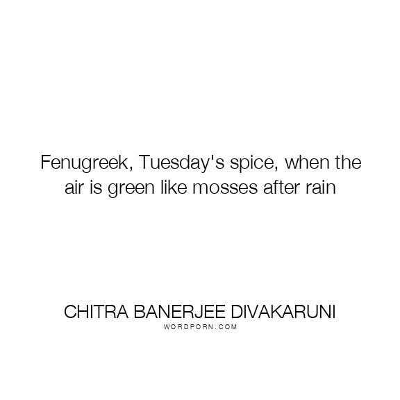 Fenugreek, Tuesday's spice, when the air is green like mosses after rain