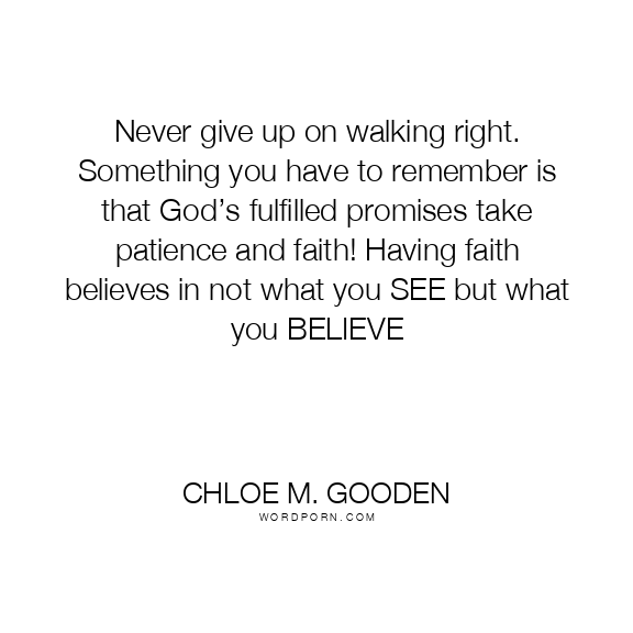 Never give up on walking right. Something you have to remember is that God’s fulfilled promises take patience and faith! Having faith believes in not what you SEE but what you BELIEVE