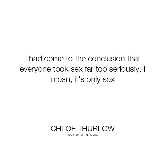 I had come to the conclusion that everyone took sex far too seriously. I mean, it's only sex
