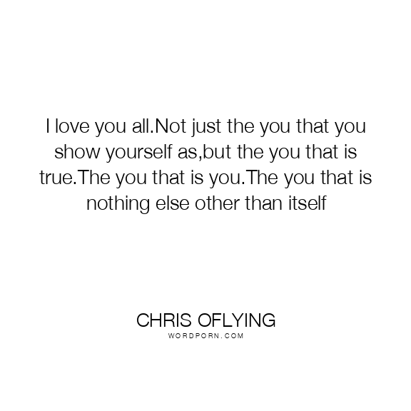 I love you all.Not just the you that you show yourself as,but the you that is true.The you that is you.The you that is nothing else other than itself