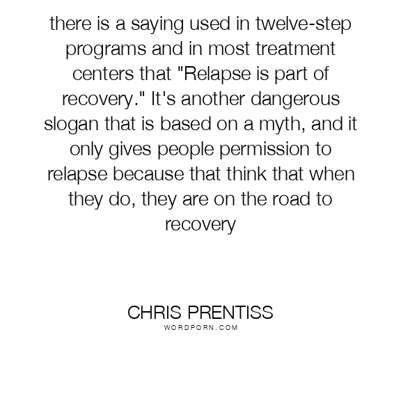 there is a saying used in twelve-step programs and in most treatment centers that "Relapse is part of recovery." It's another dangerous slogan that is based on a myth, and it only gives people permission to relapse because that think that when they do, they are on the road to recovery