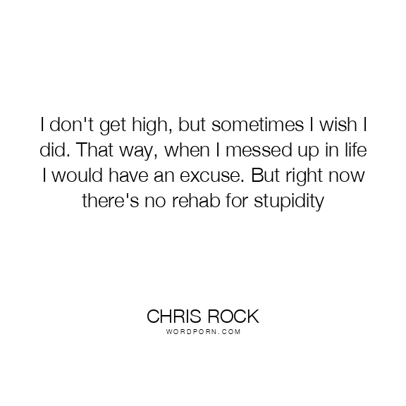 I don't get high, but sometimes I wish I did. That way, when I messed up in life I would have an excuse. But right now there's no rehab for stupidity