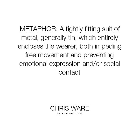 METAPHOR: A tightly fitting suit of metal, generally tin, which entirely encloses the wearer, both impeding free movement and preventing emotional expression and/or social contact