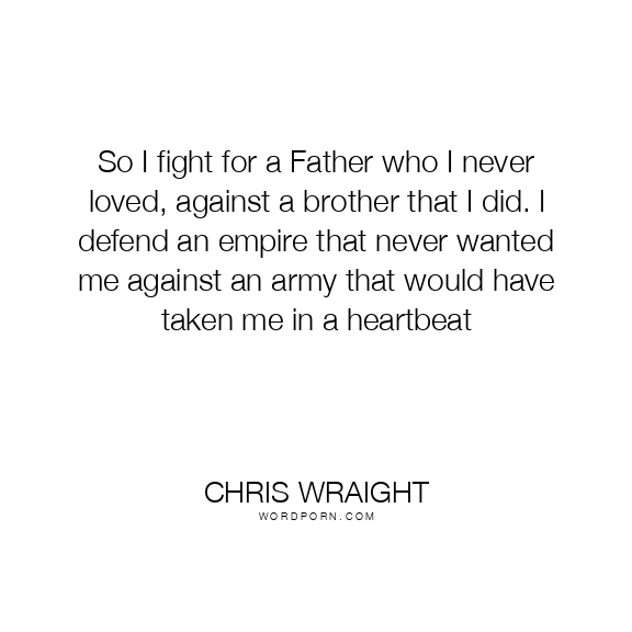 So I fight for a Father who I never loved, against a brother that I did. I defend an empire that never wanted me against an army that would have taken me in a heartbeat