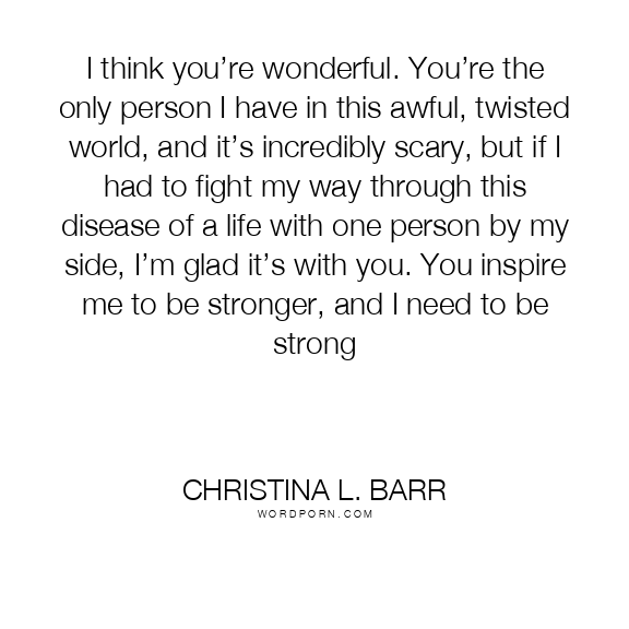 I think you’re wonderful. You’re the only person I have in this awful, twisted world, and it’s incredibly scary, but if I had to fight my way through this disease of a life with one person by my side, I’m glad it’s with you. You inspire me to be stronger, and I need to be strong