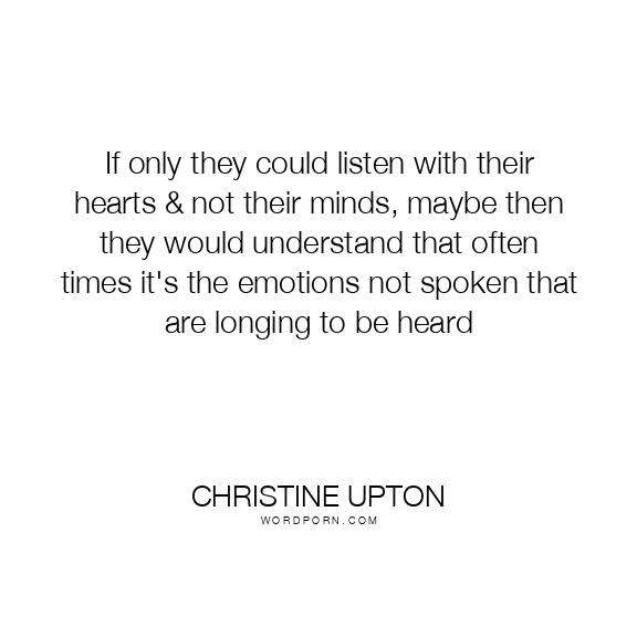 If only they could listen with their hearts & not their minds, maybe then they would understand that often times it's the emotions not spoken that are longing to be heard