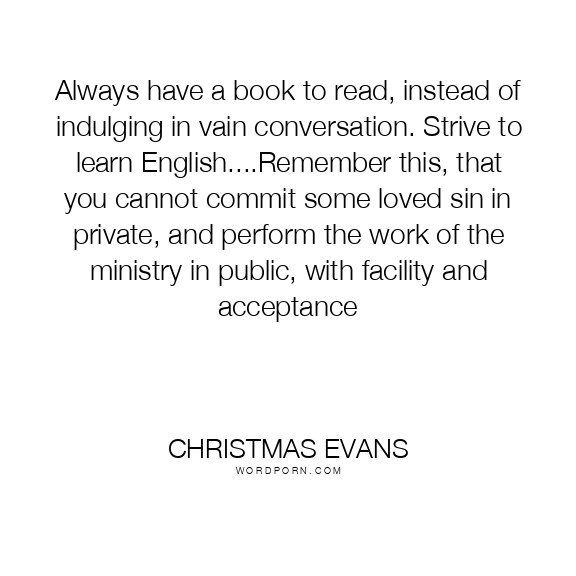 Always have a book to read, instead of indulging in vain conversation. Strive to learn English....Remember this, that you cannot commit some loved sin in private, and perform the work of the ministry in public, with facility and acceptance