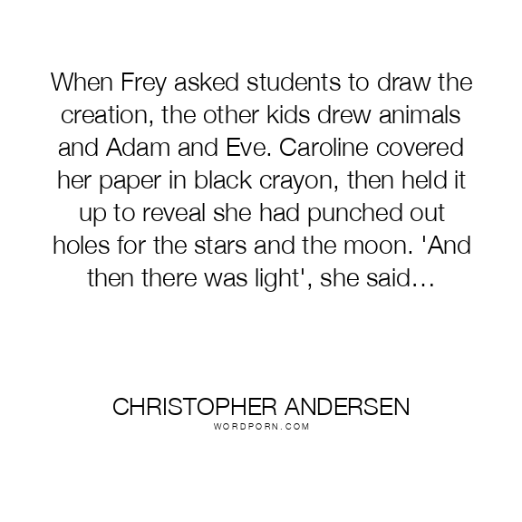 When Frey asked students to draw the creation, the other kids drew animals and Adam and Eve. Caroline covered her paper in black crayon, then held it up to reveal she had punched out holes for the stars and the moon. 'And then there was light', she said…