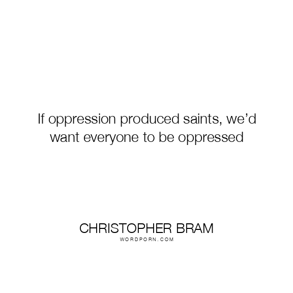 If oppression produced saints, we’d want everyone to be oppressed