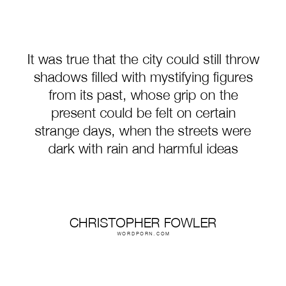 It was true that the city could still throw shadows filled with mystifying figures from its past, whose grip on the present could be felt on certain strange days, when the streets were dark with rain and harmful ideas