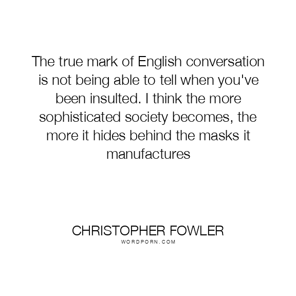 The true mark of English conversation is not being able to tell when you've been insulted. I think the more sophisticated society becomes, the more it hides behind the masks it manufactures