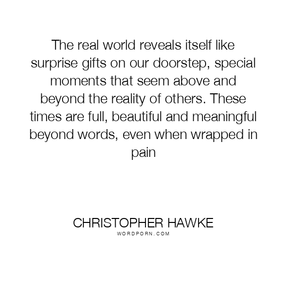 The real world reveals itself like surprise gifts on our doorstep, special moments that seem above and beyond the reality of others. These times are full, beautiful and meaningful beyond words, even when wrapped in pain