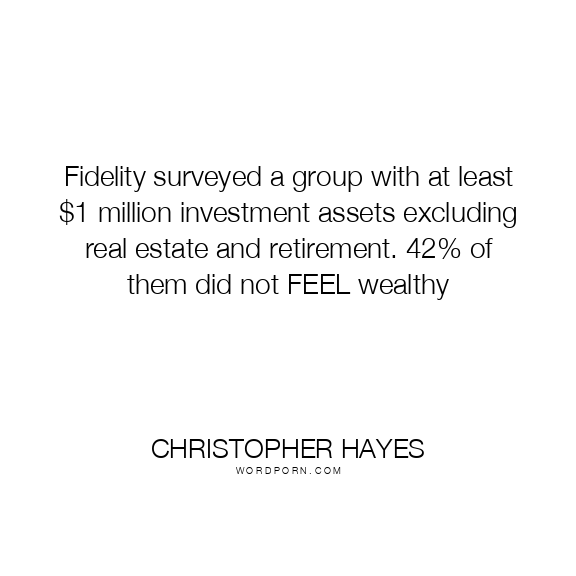 Fidelity surveyed a group with at least $1 million investment assets excluding real estate and retirement. 42% of them did not FEEL wealthy