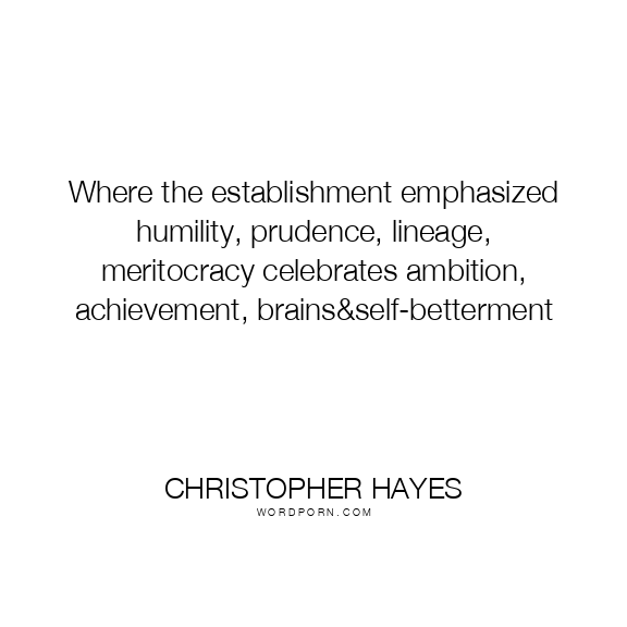 Where the establishment emphasized humility, prudence, lineage, meritocracy celebrates ambition, achievement, brains&self-betterment
