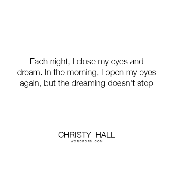 Each night, I close my eyes and dream. In the morning, I open my eyes again, but the dreaming doesn't stop