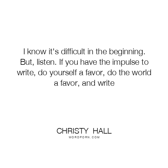 I know it's difficult in the beginning. But, listen. If you have the impulse to write, do yourself a favor, do the world a favor, and write