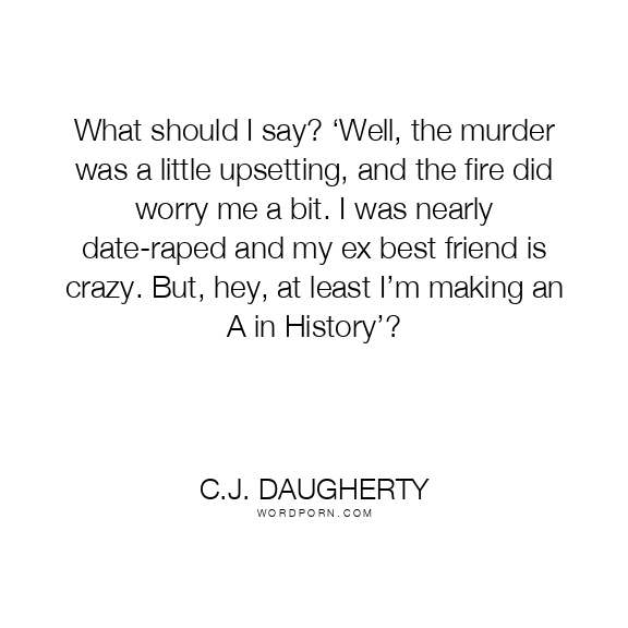 What should I say? ‘Well, the murder was a little upsetting, and the fire did worry me a bit. I was nearly date-raped and my ex best friend is crazy. But, hey, at least I’m making an A in History’?