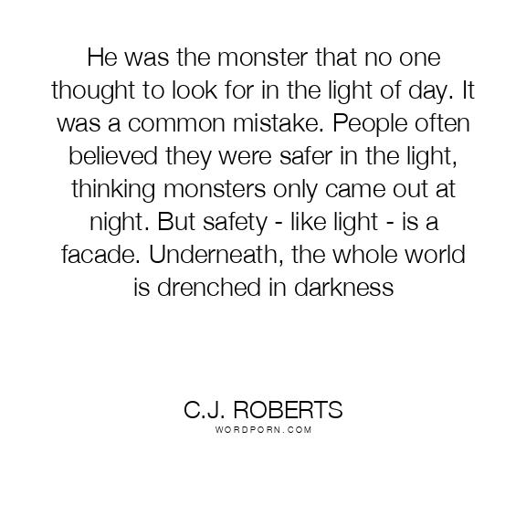 He was the monster that no one thought to look for in the light of day. It was a common mistake. People often believed they were safer in the light, thinking monsters only came out at night. But safety - like light - is a facade. Underneath, the whole world is drenched in darkness