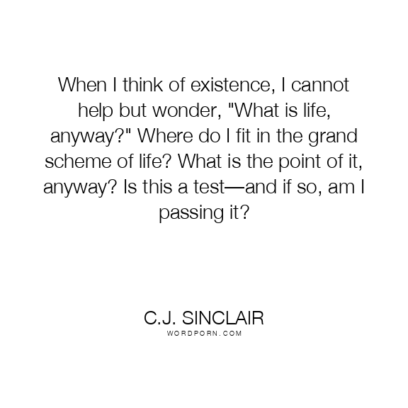 When I think of existence, I cannot help but wonder, "What is life, anyway?" Where do I fit in the grand scheme of life? What is the point of it, anyway? Is this a test—and if so, am I passing it?