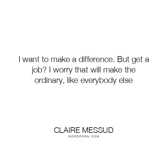 I want to make a difference. But get a job? I worry that will make the ordinary, like everybody else