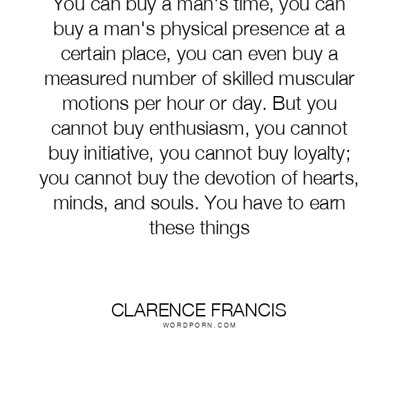 You can buy a man's time, you can buy a man's physical presence at a certain place, you can even buy a measured number of skilled muscular motions per hour or day. But you cannot buy enthusiasm, you cannot buy initiative, you cannot buy loyalty; you cannot buy the devotion of hearts, minds, and souls. You have to earn these things