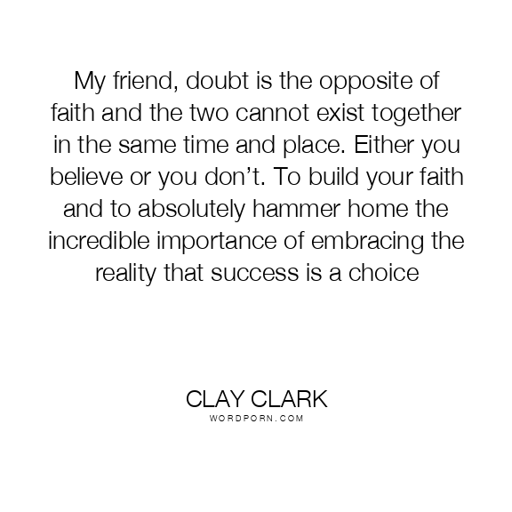 My friend, doubt is the opposite of faith and the two cannot exist together in the same time and place. Either you believe or you don’t. To build your faith and to absolutely hammer home the incredible importance of embracing the reality that success is a choice