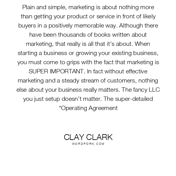 Plain and simple, marketing is about nothing more than getting your product or service in front of likely buyers in a positively memorable way. Although there have been thousands of books written about marketing, that really is all that it’s about. When starting a business or growing your existing business, you must come to grips with the fact that marketing is SUPER IMPORTANT. In fact without effective marketing and a steady stream of customers, nothing else about your business really matters. The fancy LLC you just setup doesn’t matter. The super-detailed “Operating Agreement