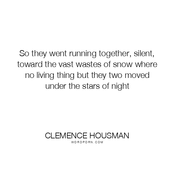 So they went running together, silent, toward the vast wastes of snow where no living thing but they two moved under the stars of night