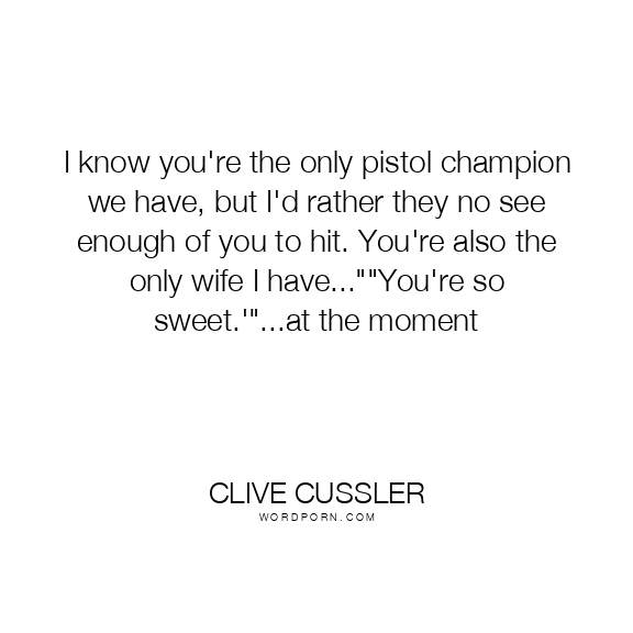 I know you're the only pistol champion we have, but I'd rather they no see enough of you to hit. You're also the only wife I have...""You're so sweet.'"...at the moment