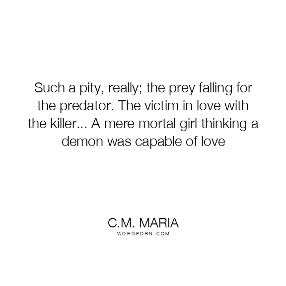 Such a pity, really; the prey falling for the predator. The victim in love with the killer... A mere mortal girl thinking a demon was capable of love