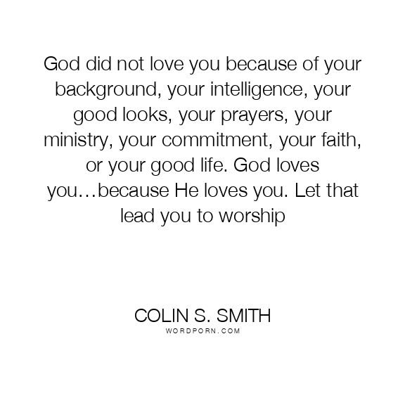 God did not love you because of your background, your intelligence, your good looks, your prayers, your ministry, your commitment, your faith, or your good life. God loves you…because He loves you. Let that lead you to worship