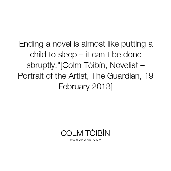 Ending a novel is almost like putting a child to sleep – it can't be done abruptly."[Colm Tóibín, Novelist – Portrait of the Artist, The Guardian, 19 February 2013]