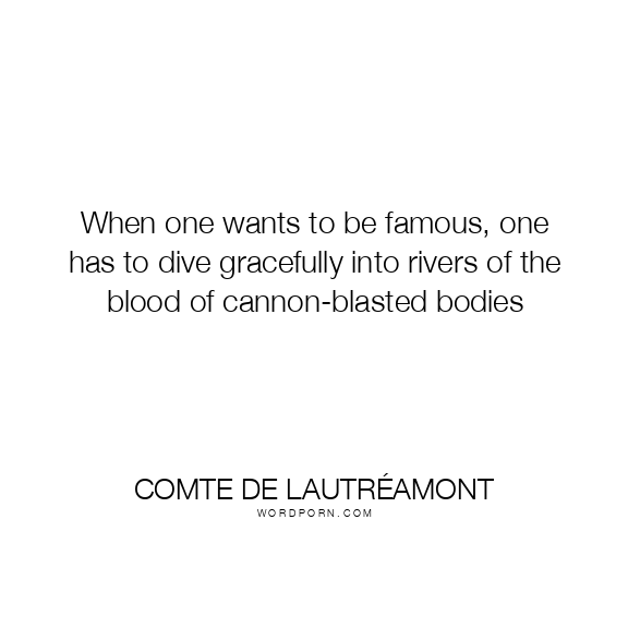 When one wants to be famous, one has to dive gracefully into rivers of the blood of cannon-blasted bodies